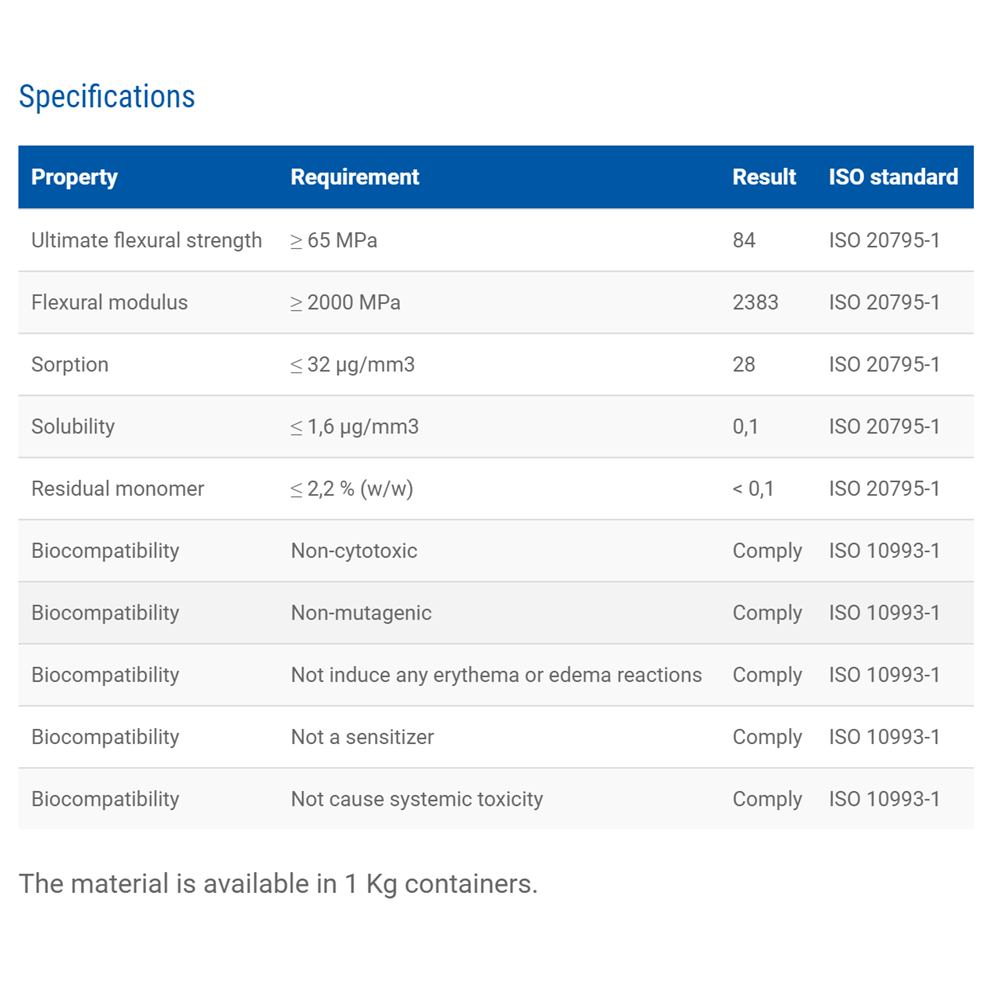 This material has excellent mechanical properties and is comparable to conventional denture base materials. Available in 6 new colors: Classic Pink, Dark Pink, Light Pink, Opaque Pink, Red Pink and Translucent Pink.