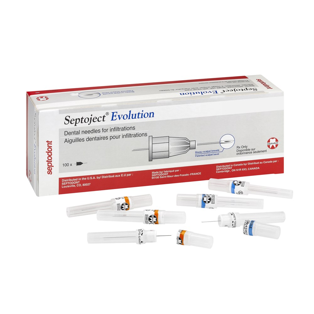 The innovative needle with a patented scalpel designed bevel. Septoject Evolution is engineered for a smoother penetration with less tissue displacement. This means less discomfort for your patients, even when used for multiple injections.