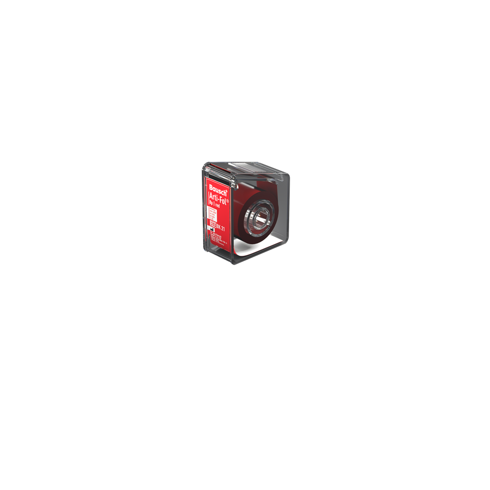 Bausch Arti-Fol® Occlusion films are especially suitable for representing static and dynamic occlusion in several colors. The first step is to inspect the static occlusion in red and the second step to inspect the dynamic occlusion in black. The color sequence can always be alternated. Several different colors can be used for a much more precise representation of dynamic occlusion. Bausch Arti-Fol® is available in four different colors. All films are available with double-sided color coating for the marking of antagonistic contacts.