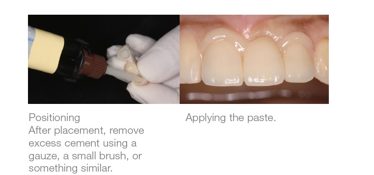 - Apply PANAVIA V5 Paste to the restoration surface and position the restoration.