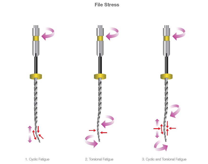 This resistance counteracts the drive torque of the endomotor and can cause the file to twist (torsion). Under certain conditions (torsion strength and frequency of repetition) this may cause the file to break.