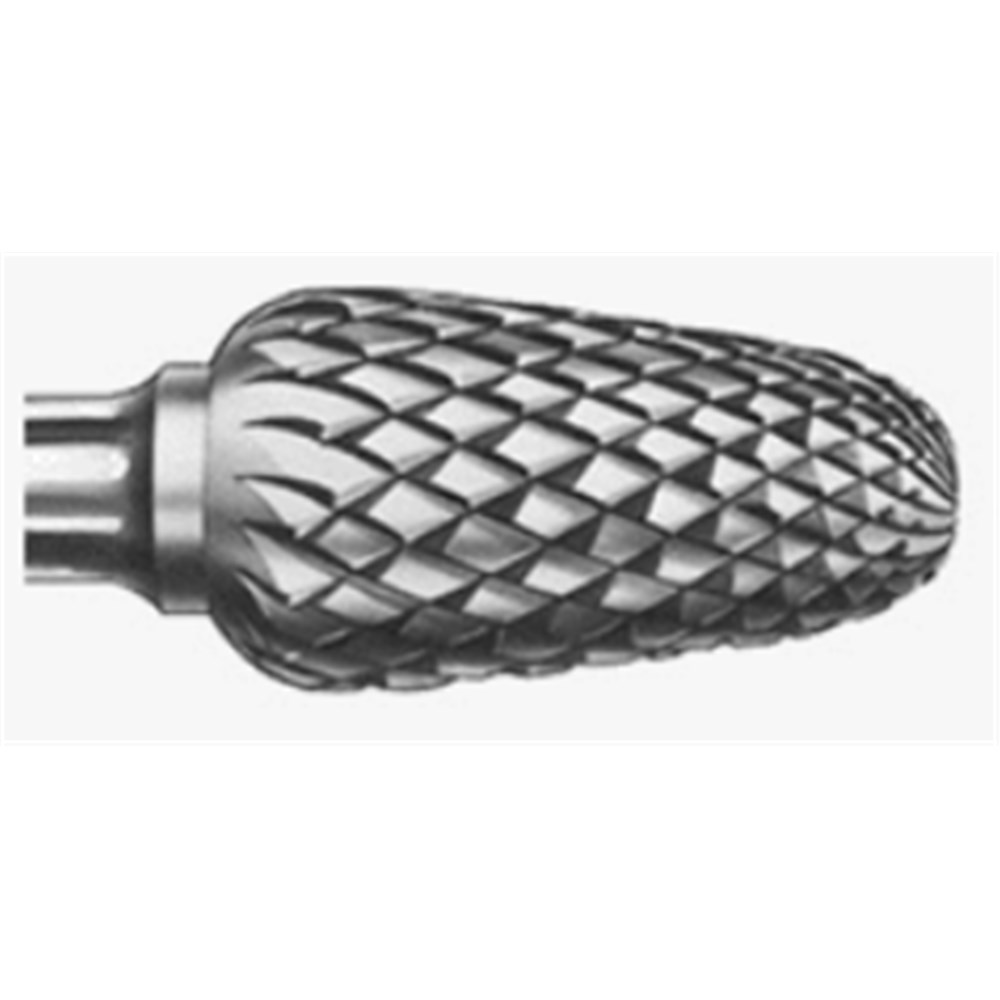 H351E tungsten carbide laboratory cutter for acrylics and metal alloys. RA 204 shank for right angle handpiece, Size 060 (6mm) diameter, with 11mm working length.
