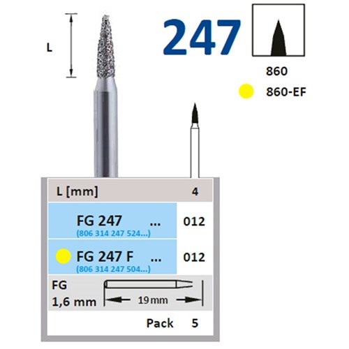 Horico Diamond Bur - 247-012 - Flame Pointed - High Speed, Friction Grip (FG), 1-Pack