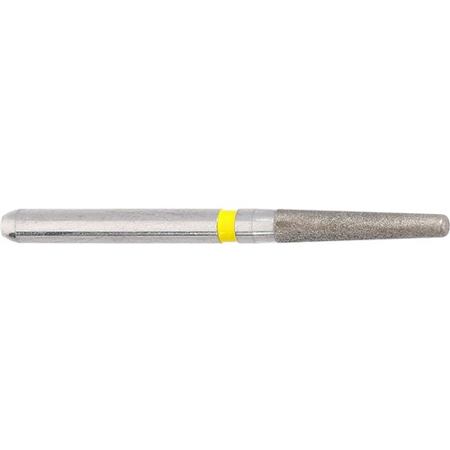 Tapered shoulder, rounded edge, FG 314, medium grit diamond, 023 diameter, 8mm working length with 2.5 degree taper for crown preparations. Matches H336 carbide finishers series.