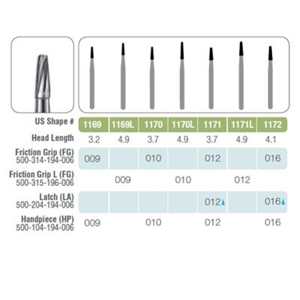 Kerr Jet Tungsten Carbide Bur - 1171-012 - Round End Fissure - Slow Speed, Right Angle (RA), 100-Pack
