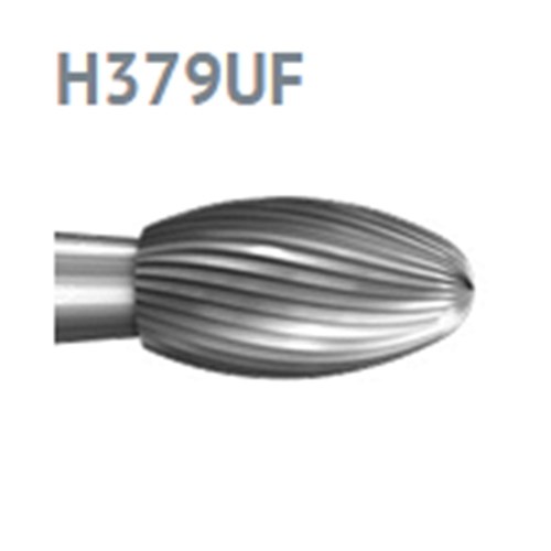 H379UF peri-implantitis bur for oral work and smoothing of titanium implants as part of the surgical/resective treatment of peri-implantitis, according to Dr Martin Durholt. Ultra fine tungsten carbide, FGSXL 310 extra long surgical shank, size 014 (1.4mm) diameter, working length 3.1mm with 30 blades. Instrument length 30mm.