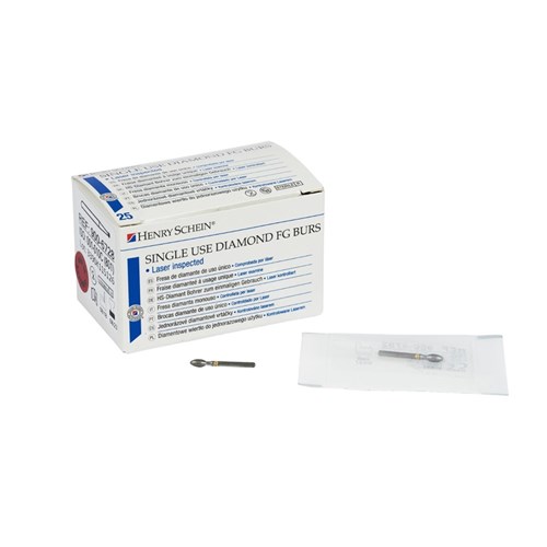 Henry Schein Diamond Bur - 277-023F - Egg - Sterile - Single Patient - High Speed, Friction Grip (FG), 25-Pack