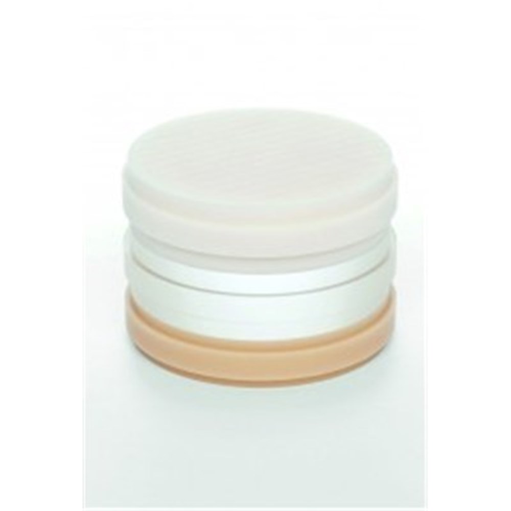 Suitable for fabrication of temporary crowns and bridges and for verifying the bridge on the plaster model/ in mouth before the final ZrO milling process. Vicker hardness: 26,60 HV. Flexural strength: 114 Mpa. E-Module: 2771Mpa. Residual monomer < 1%.Diameter: 95 - 105 mm. Thickness: 10- 25 mm. For temporary crowns and bridges, verification of the bridge on the plaster model/ mouth, splint.