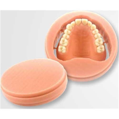 Pink disc, designed for milling digitally designed, highly aesthetic and functional dentures.