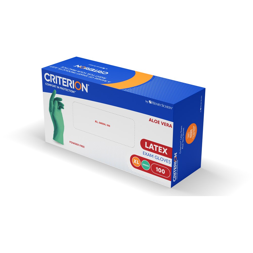 Henry Schein Gloves - Criterion - Aloe Vera - Latex - Non Sterile - Powder Free - Green - Extra Large, 100-Pack