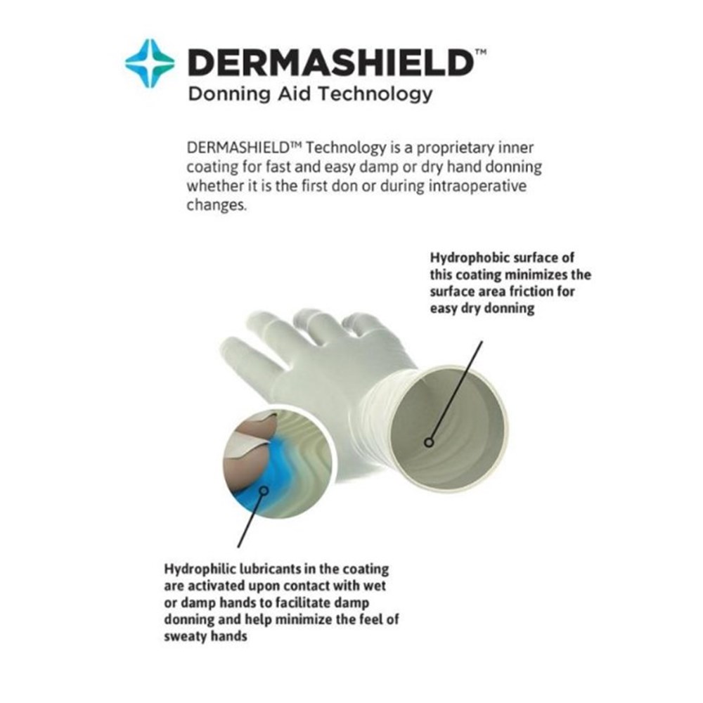 • INTERNAL GLOVE SURFACE: Polymer Coated with DERMASHIELD™ Technology
