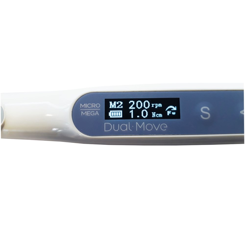 Using a cordless, well-balanced in hand and silent endodontic motor with control of movement, speed and torque, offers freedom and comfort, as well as an optimal security when shaping the root canals. The display turns around in order to suit to left-handers. The contra-angle rotates without being disconnected from the handpiece. Its miniature head and thin neck make it easier to reach the posterior teeth while keeping an excellent visibility on the root canals inlets and working area. Functionalities, high level of customisation, as well as advanced features that are available when combined with the Dual Pex apex locator, make Dual Move the ideal portable device for individual practices, in continuous rotation or reciprocating movement