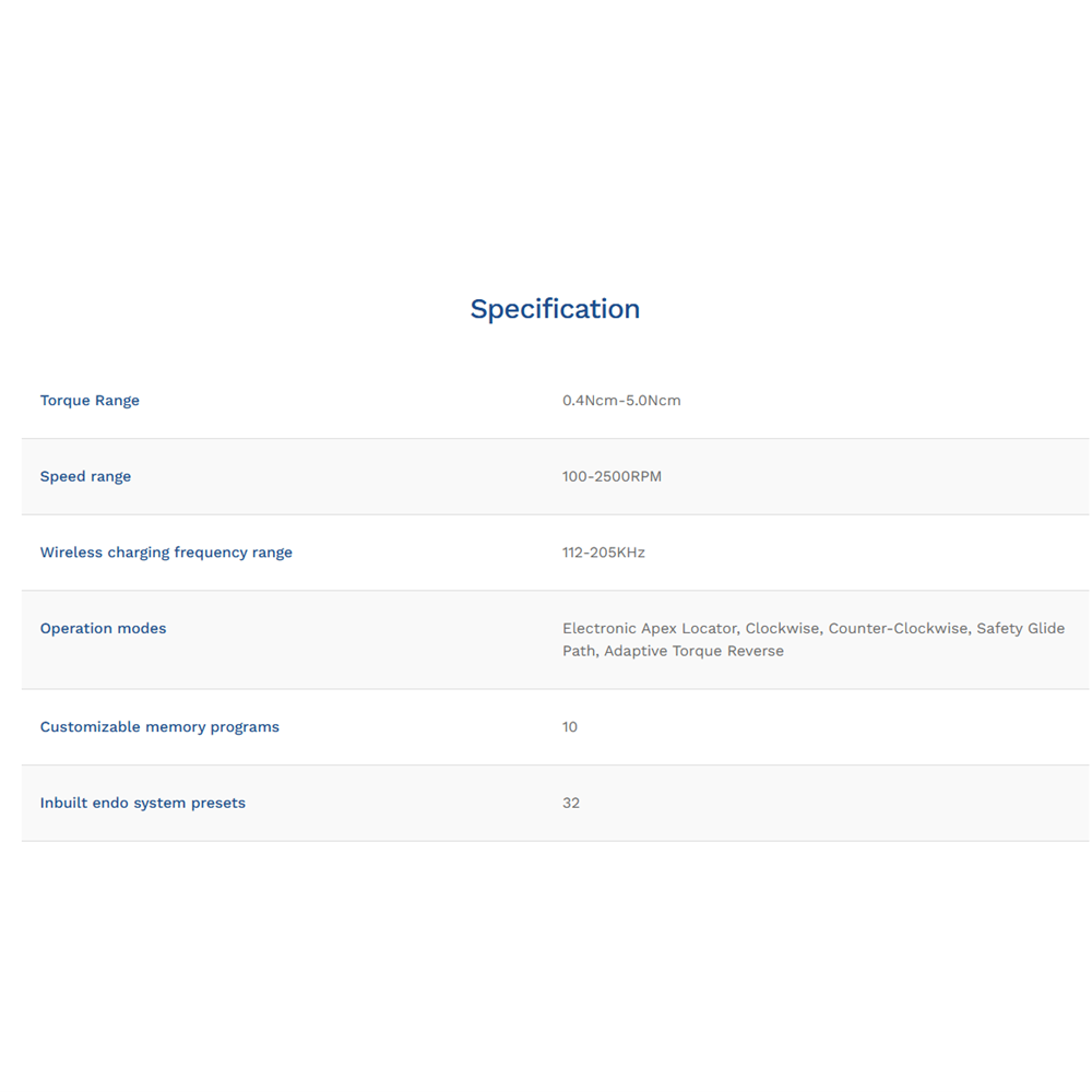 - Inbuilt apex locator - integrated length determination