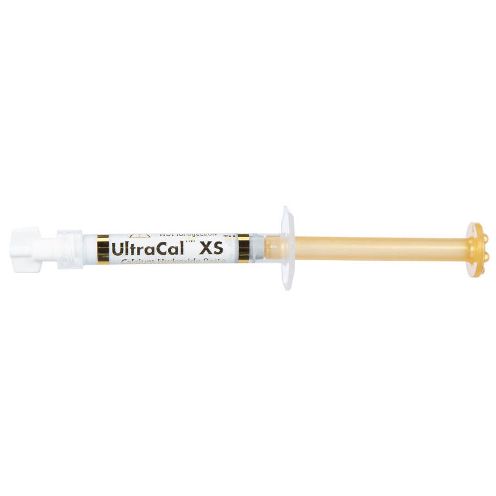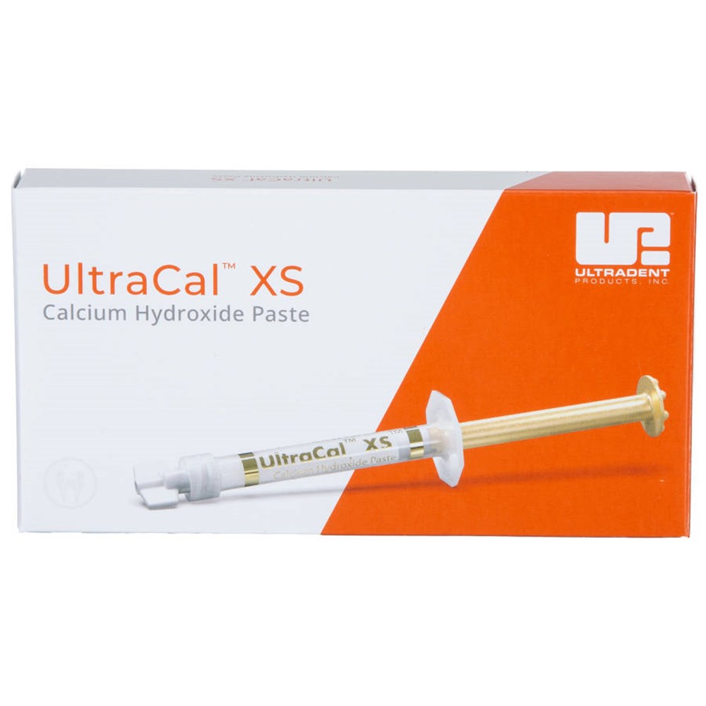 UltraCal XS calcium hydroxide paste is a uniquely formulated calcium hydroxide paste that is both aqueous and radiopaque, with a high pH (12.5). It is recommend to use the larger 29 ga NaviTip™ tip for predictable flow, enabling direct placement. UltraCal XS paste can be thoroughly removed from the canal using Ultradent™ Citric Acid and a NaviTip™ FX™ tip.