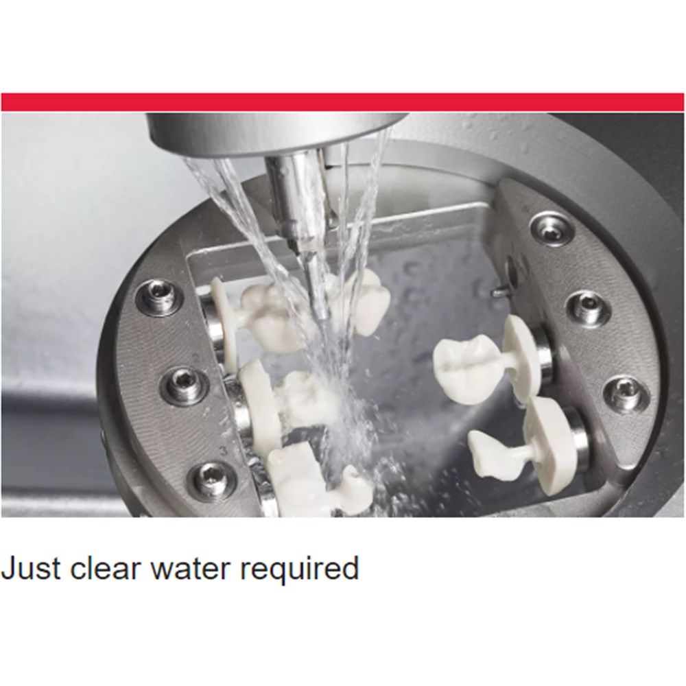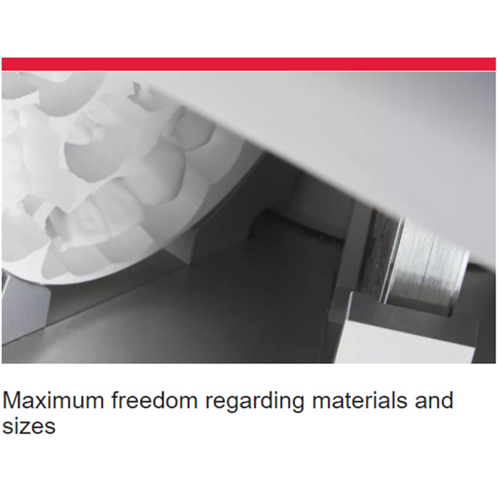 State of the art in the industry: with the high-end dental milling machine R5, vhf has developed a highly automated milling and grinding machine. It brings revolutionary approaches to the lab and office along with a ten-fold blank changer for wet and dry machining. With its five axes and the first-class spindle, the R5 allows you to process almost any material that is available in dental technology.