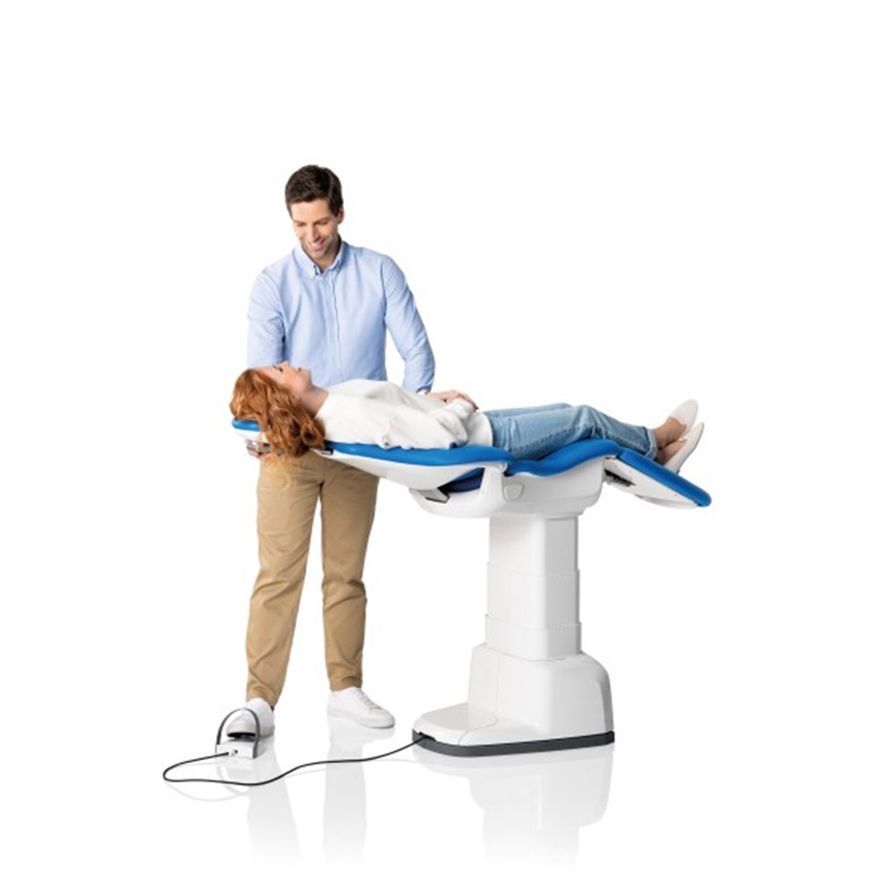 The 180-degree swivel function allows the chair to be swiveled 90 degrees left and right. This is a valuable feature when using an intraoral X-ray unit or other auxiliary equipment. The swivel function provides a unique freedom for clinic design and is especially appreciated when space is limited.