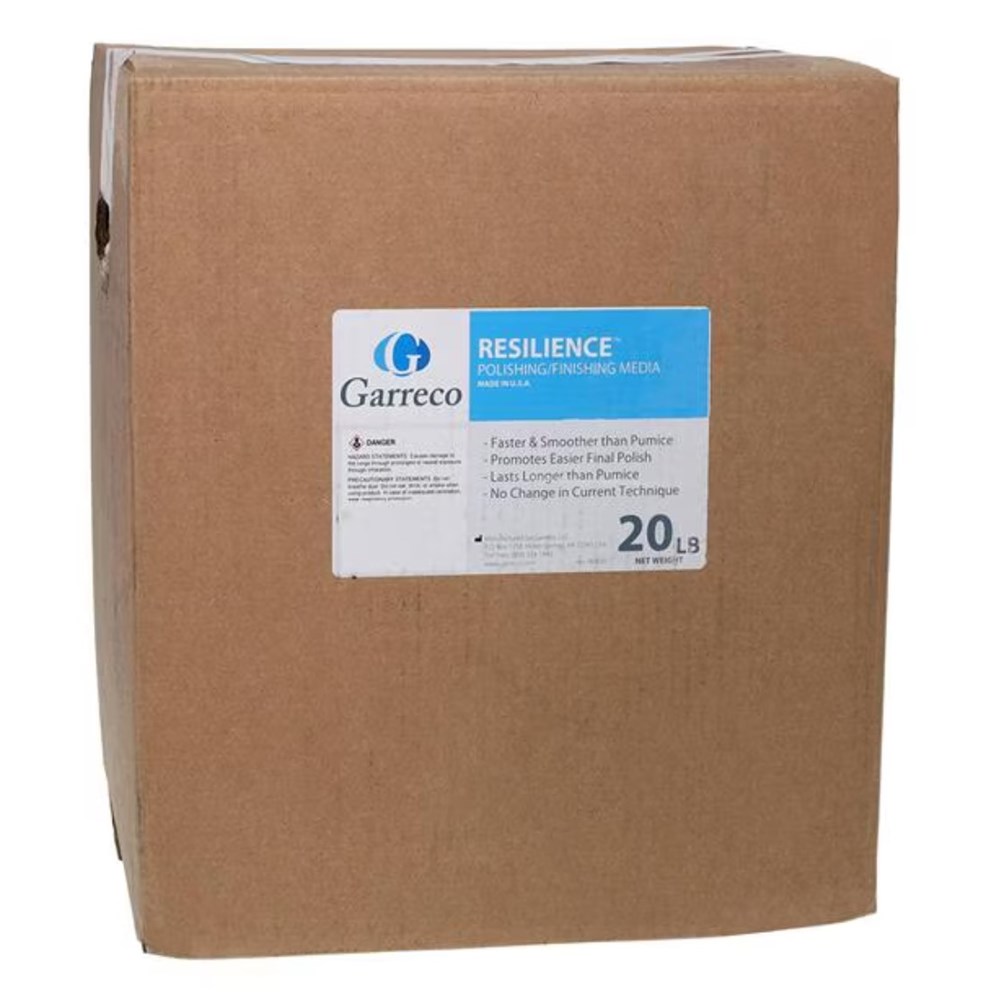 Acrylic finishing media, is faster and smoother than pumice and promotes easier polishing.