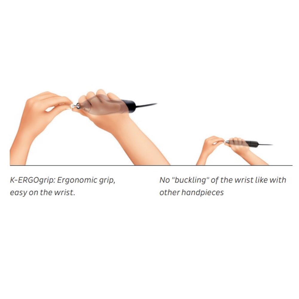 The K-ERGOgrip is the successor to the successful KaVo K9 dental handpieces. K-ERGOgrip laboratory handpieces with the patented single-shaft system surpass even the renowned quality of previous KaVo drives, with outstanding durability, maximum reliability, perfectly smooth running and a long service life.