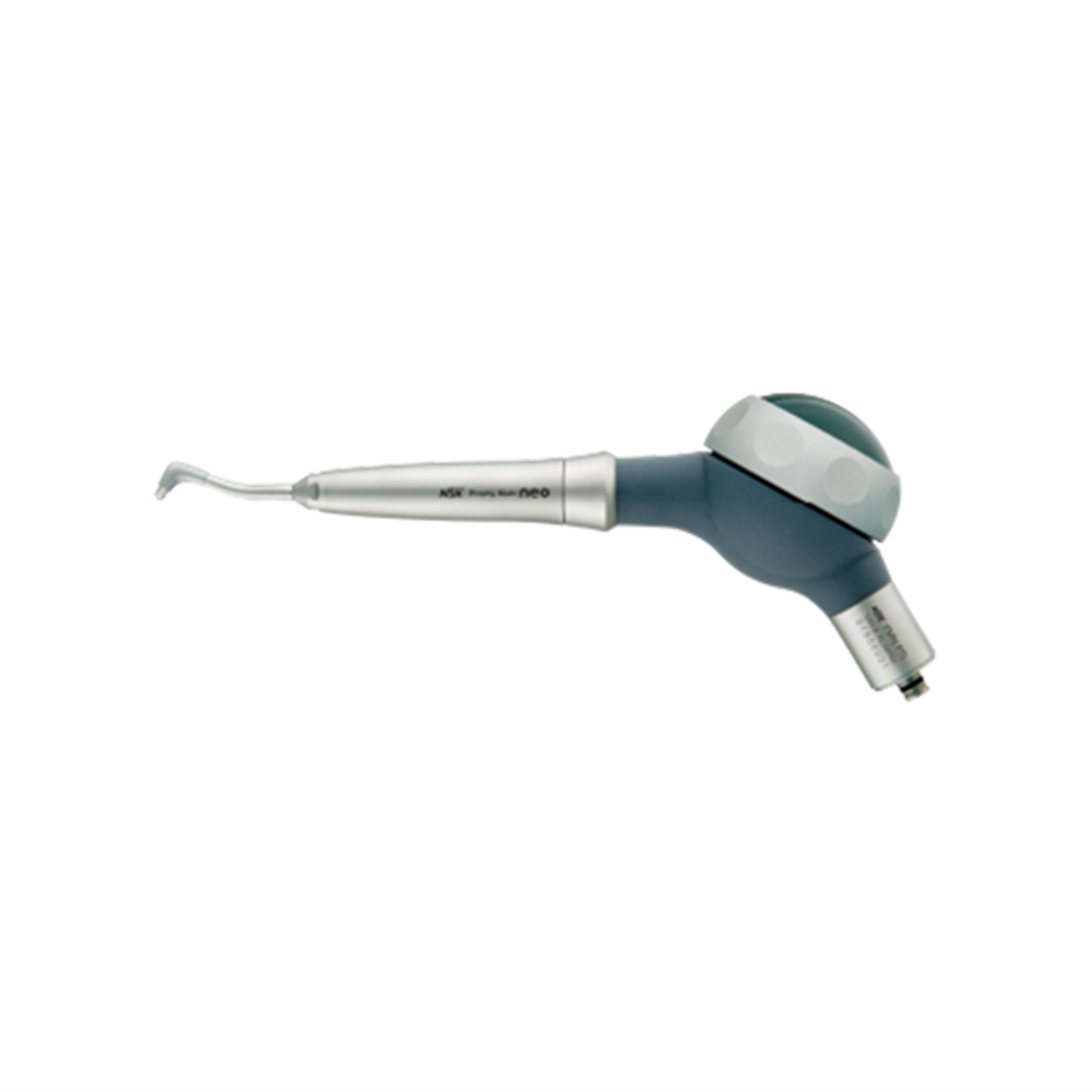 Enhanced Prophy-Mate neo unites form and functionality for easier use. Excellent weight balance and a lightweight, compact powder chamber make Prophy-Mate neo comfortable to hold, while the original NSK handpiece connection swivels 360° even under strong air pressure. Effortless operation shortens time for treatment of plaque and stains. 60° and 80°nozzles are available.