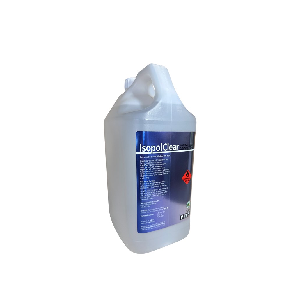 PDS IsopolClear is a hospital-grade disinfectant containing 70% Isopropyl Alcohol, specifically designed for infection control in surgeries and healthcare settings.