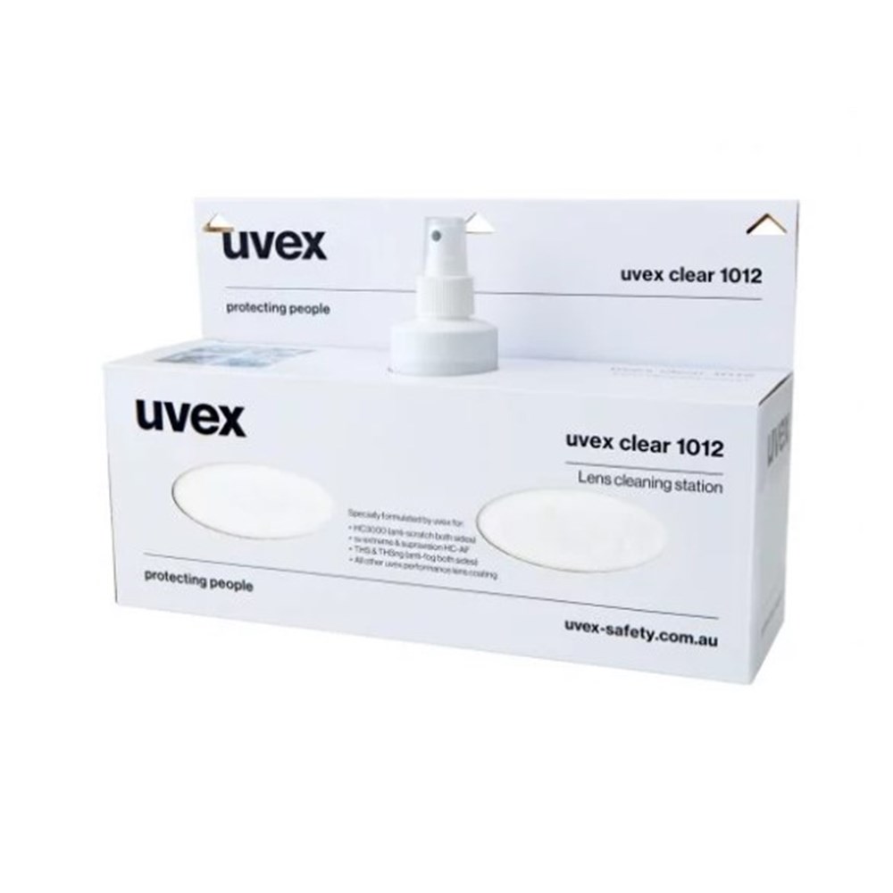 - Comes complete with 2 tissue packs and 225ml bottle ‘uvex clear’ cleaning solution
