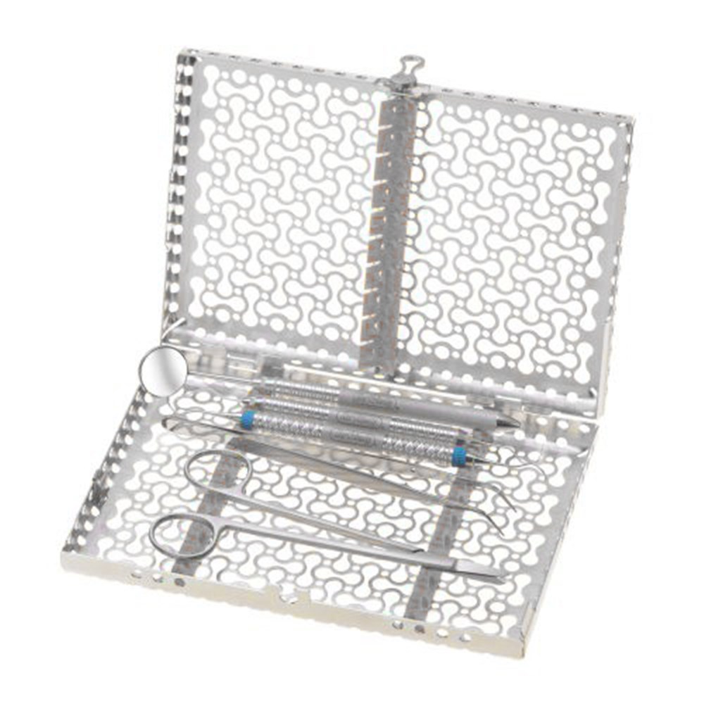 Cassette holds 10 instruments. Exterior Dimensions 5.5" x 8" x 1.25" (140 mm x 203 mm x 32 mm).