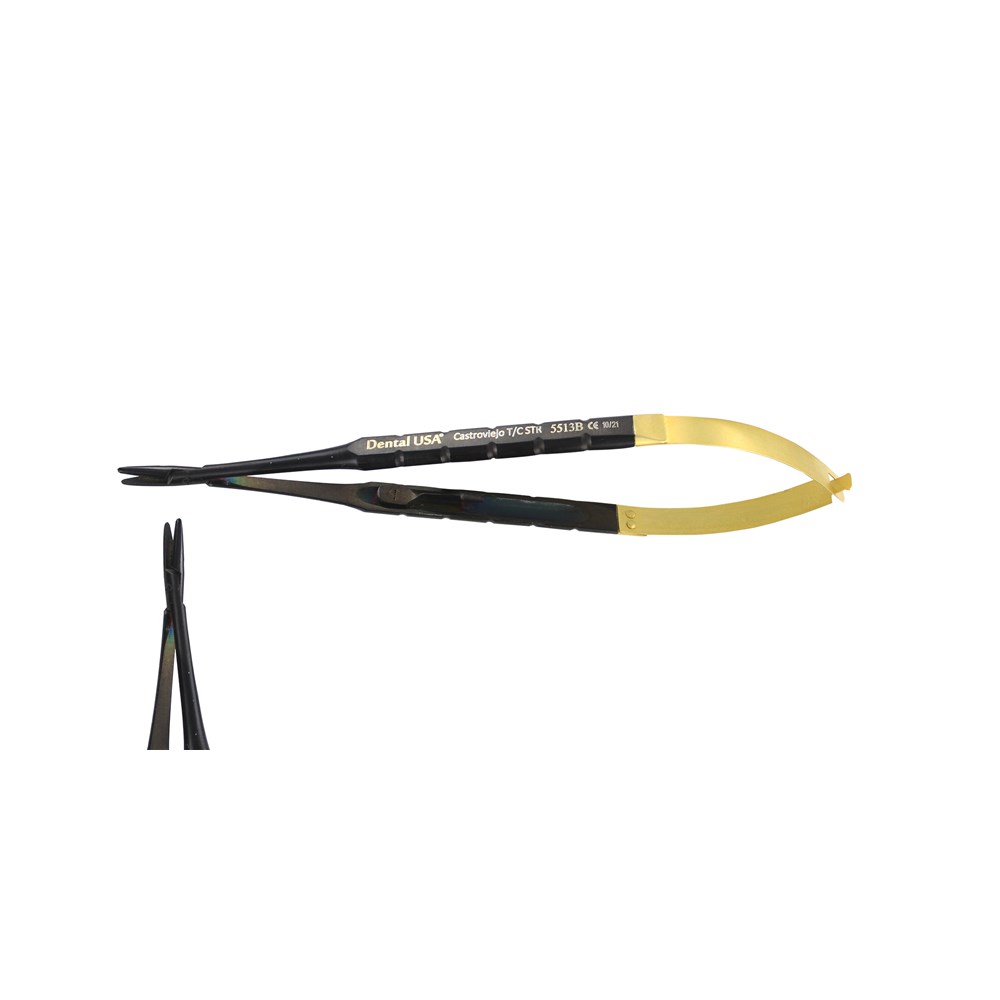 NEEDLE HOLDER CASTROVIEJO STR T/C 16cm BLACK EDITION For holding and guiding the needle securely during suturing. Tungsten carbide greatly improves the durability and serration and exceptionally upgrades the performance.