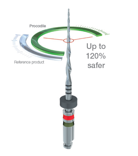 Compared to other reciprocating file systems, Procodile is up to 120 % more resistant to cyclic fatigue. This decreases the risk of fatigue fracture and increases the safety of the patient. The single-use instruments are supplied in sterile packaging to reduce the risk of possible cross-contamination.
