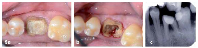 Another clinical situation with extraction of tooth 36 due to an existing carious infection of the cavity floor associated with an interradicular injury.