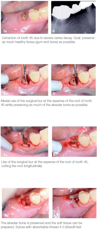 Therefore, a comprehensive analysis of the situation is definitely still required and concerns the clinical and radiographic examinations, the patient and his or her (medical or psychological) condition/history, the practice team (practitioner and assistant), the practitioner’s ability to carry out the surgical procedure (skills, experience) and the technical field/instruments to be used. This is exactly where the use of the surgical bur H162ST.314.016 by Komet comes into play.