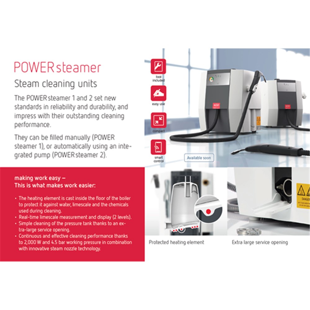 POWER steamer 1 and 2 set new standards in reliability and durability and impress with their outstanding cleaning performance.