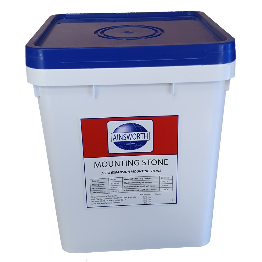 Specially formulated mounting stone for rapid setting and zero expansion to facilitate quick and easy mounting on articulator. Expansion less than 0.03% and working time of less than 2 minutes, with setting time of 4 minutes
