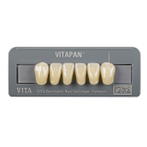 Outstanding physical properties and excellent aesthetics are combined in VITAPAN teeth. The intricate manual layering technique as well as the individual characterisation add a natural appearance to the teeth. Shade stability even after grinding, minimum water absorption and extremely low affinity to plaque ensure perfect results for demanding patients.