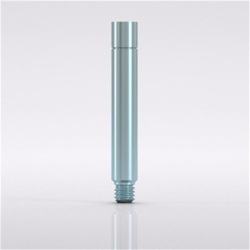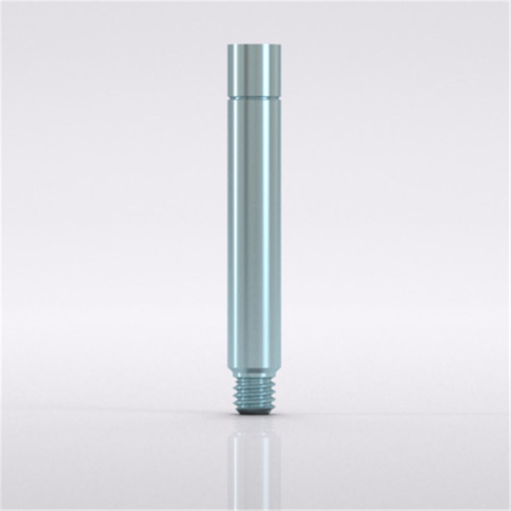 Screw, for bar abutments, for impression taking, open tray and for soldering aid, can be shortened by 2.5 mm, light blue anodized, hex, material: titanium alloy.