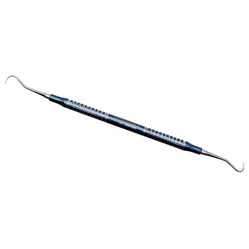 The spiral tip is designed to easily remove elastic ligatures.  Blue handle.