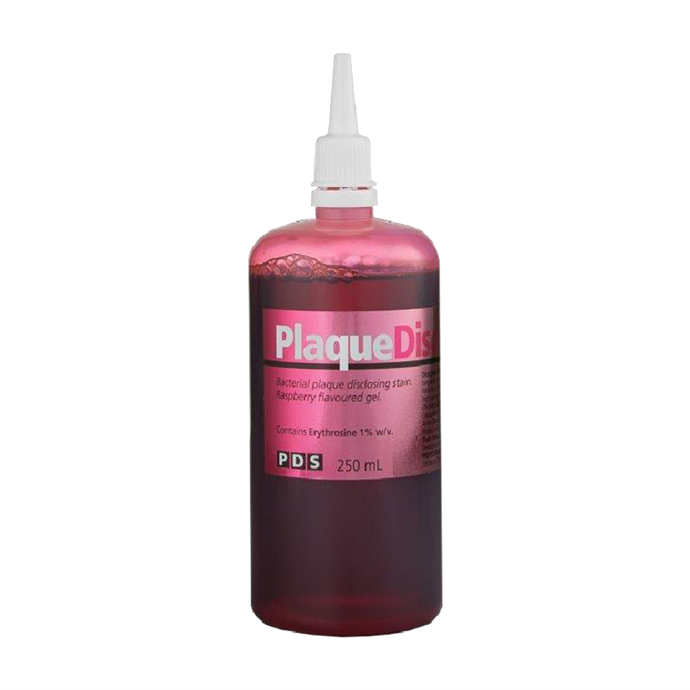 PDS Disclose Raspberry flavoured Disclosing Solution shows plaque that remains on the teeth before/after brushing as red in colour. Plaque Discloe is simple to use, simply place 2-3 drops on the tongue, swirl and spit.