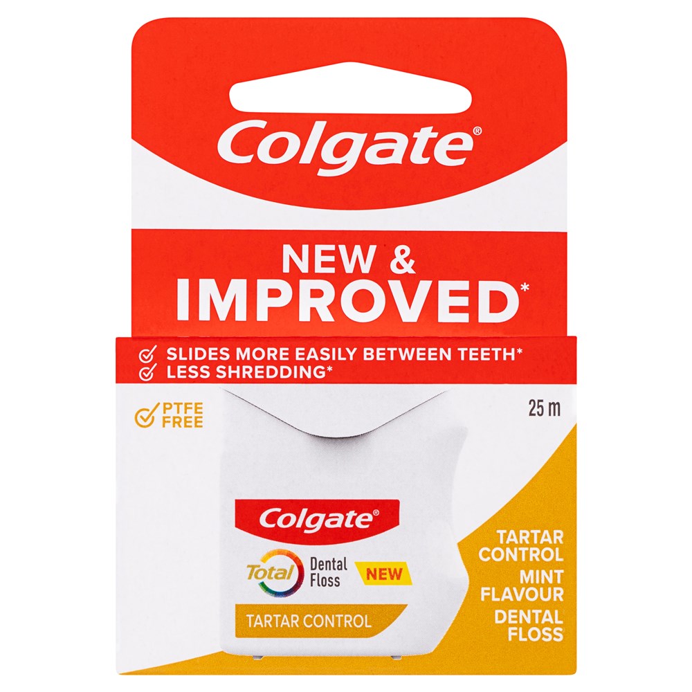 - TARTAR CONTROL DENTAL FLOSS: Colgate Total Tartar Control Dental Floss has a wax coating with tartar control ingredients