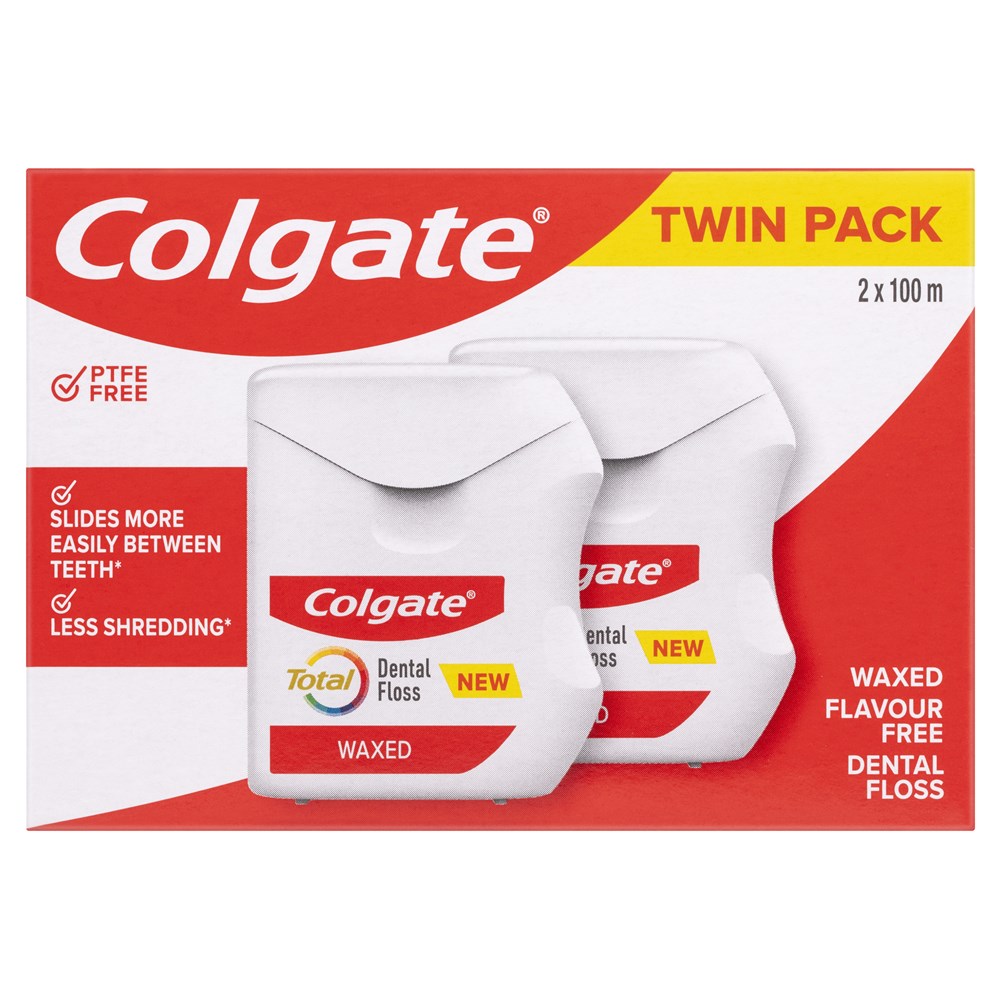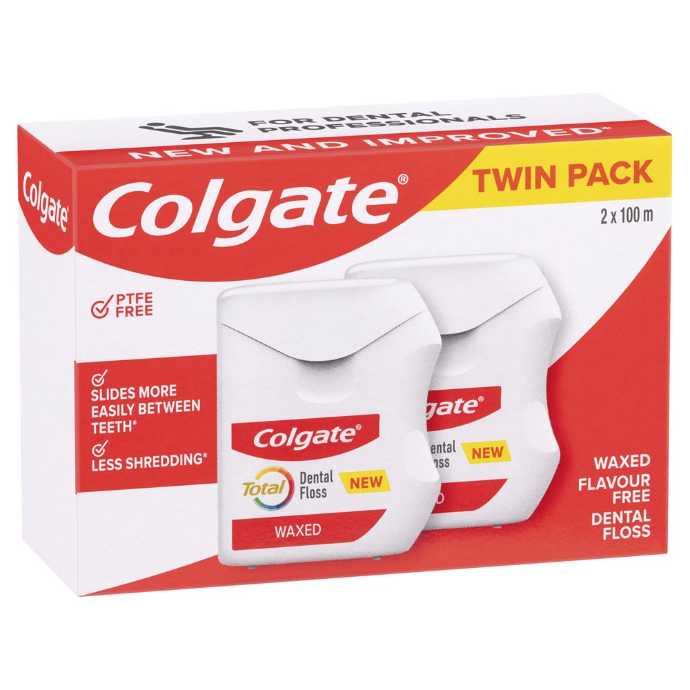 Colgate Total Dental Floss - Waxed - 100m - Dentist Only Value Pack, 2-Pack