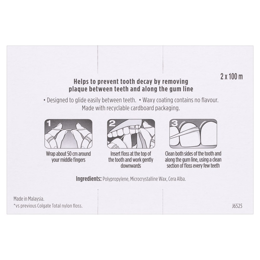 Colgate Total Mint Waxed Dental Floss slides easily between the teeth and reaches areas that brushing can't - for improved mouth health.