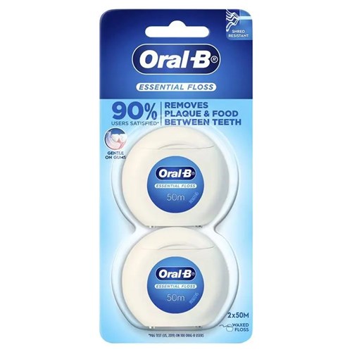 ORAL B Essential Floss Waxed Twin 2 x 50m Pack of 6