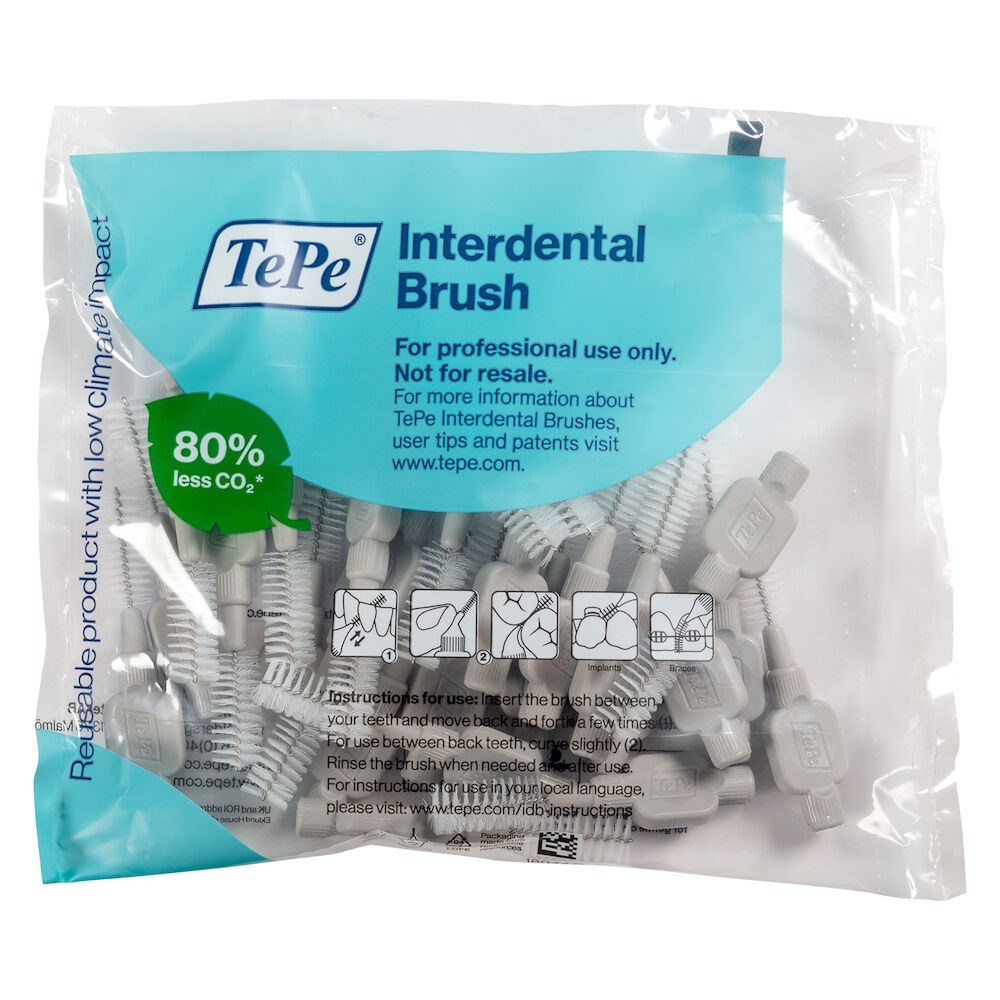 TePe Interdental Brush Original comes in 9 colour-coded sizes to fit narrow as well as wide gaps - ISO sizes 0-8. The interdental brushes are developed in collaboration with dental experts to ensure the highest quality in every detail. Daily use can help remove up to 40% more plaque than toothbrushing alone. Effective plaque removal prevents gum inflammation, cavities, and bad breath.