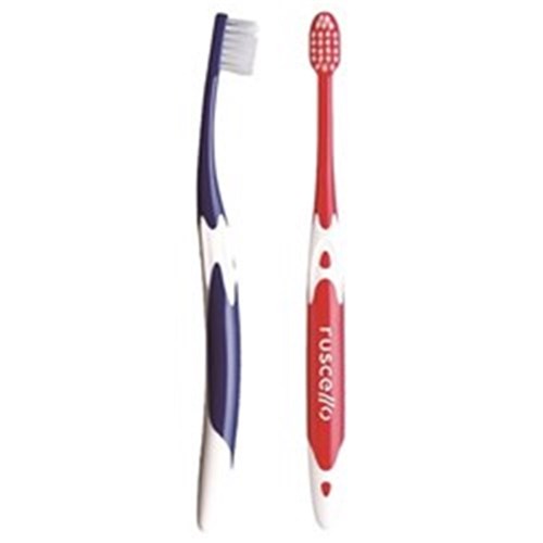 Ruscello Toothbrush range from GC, prescribed by the dental professional according to the patients oral condition and age. Ruscello toothbrushes feature an ergonomically shaped handle that provides a stable, comfortable grip and allows the brush to reach posterior and anterior teeth easily. Also featuring a range of head sizes and bristle orientation for a truly individualised approach.
