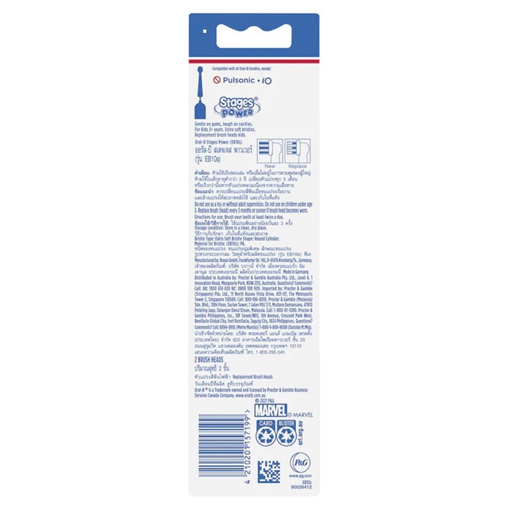 2 replacement brush heads with Spiderman motif to encourage a regular, yet fun dental routine for your child, compatible with many electric toothbrushes in the Oral-B range.