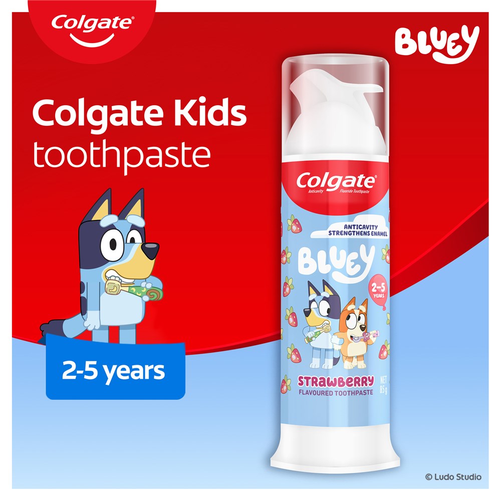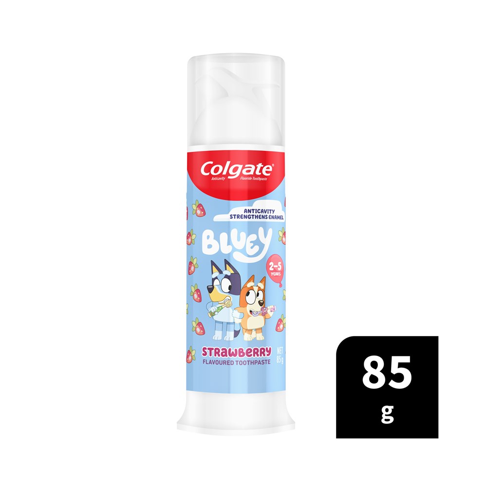 The Colgate Kids Bluey Strawberry Toothpaste Pump combines children's' favourite Bluey characters with a strawberry flavour in a pump format, making fighting cavities fun!