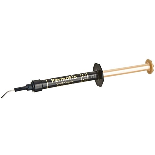 PermaFlo flowable composite is light-cured, radiopaque, methacrylate-based, and available in eight shades. Its thixotropic properties impart ideal flowability for improved adaptation. PermaFlo composite is 68% filled by weight, with an average particle size of 0.7μm and a low film thickness.