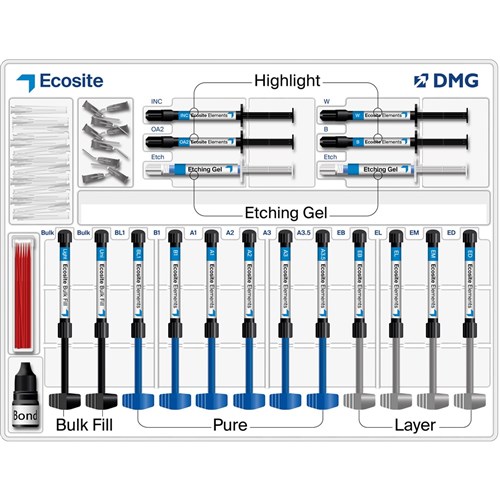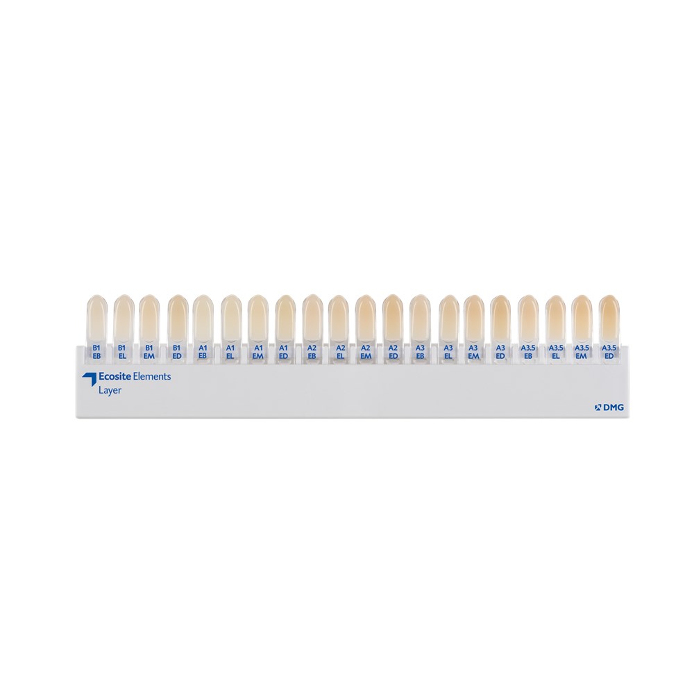 As a modern composite system, Ecosite Elements offers you a quick and intuitive colour concept – for straightforward standard cases through to aesthetically challenging restorations. The colour combination consisting of three modules enables natural aesthetics geared towards the tooth.