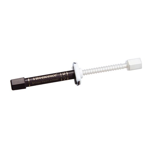 Vit-l-escence esthetic restorative material is a composite system that features the fluorescent and opalescent qualities of natural tooth structure. It is a Bis-GMA-based, radiopaque micro-hybrid system with an average particle size of 0.7µm.* Low-translucency, highly fluorescent dentin shades combined with high-translucency, opalescent/translucent enamel shades facilitate superior reproduction of natural teeth.