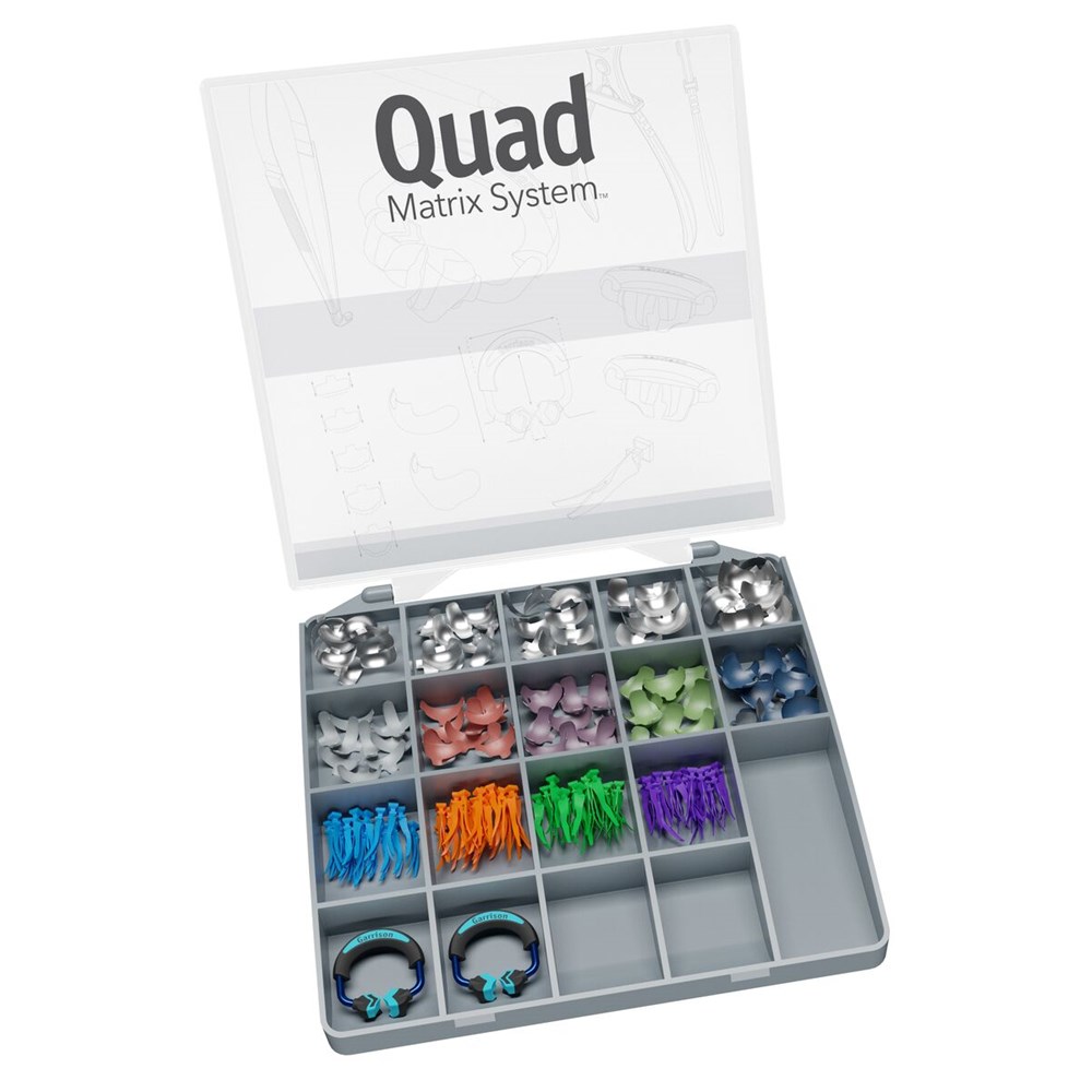 • Back-to-Back Restorations: Simultaneously restore both sides of adjacent Class IIs with confidence. Two matrix bands, one Quad Wedge, and one Quad Ring make for a streamlined workflow on this common procedure.