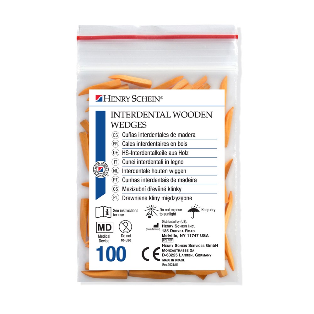 Anatomically formed interdental wedges made of non-splintering maple wood.