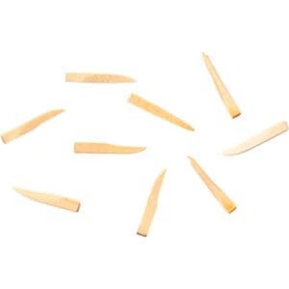 Anatomically formed interdental wedges made of non-splintering maple wood.